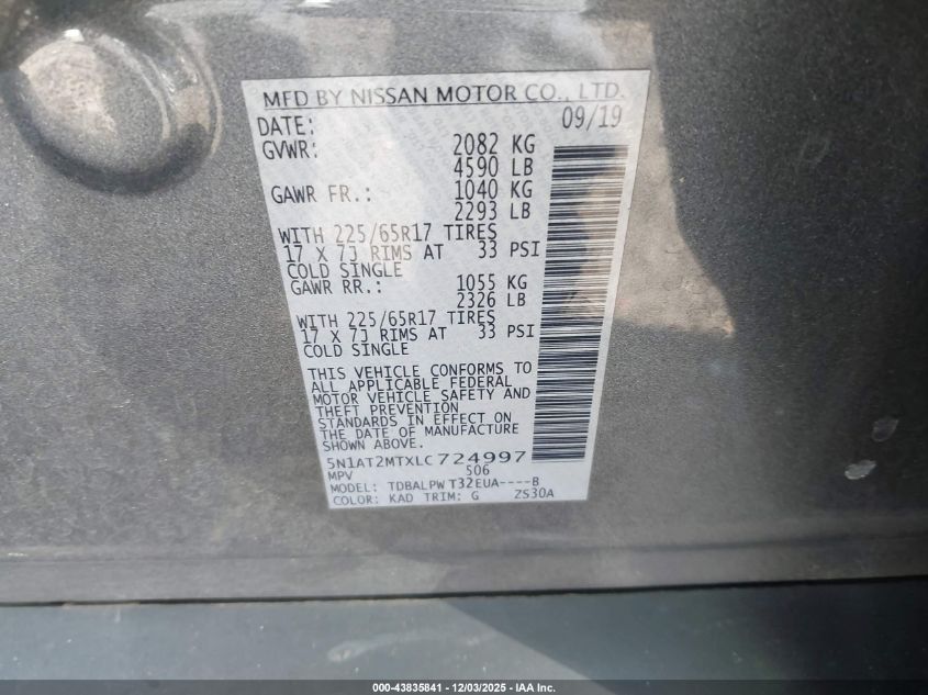 2020 NISSAN ROGUE 2020 року Бензин, 2.5, Передній привід, vin - 5N1AT2MTXLC724997 з США