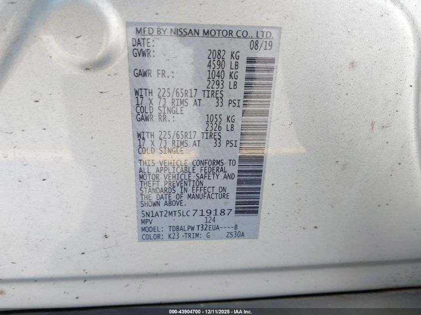 2020 NISSAN ROGUE 2020 року Бензин, 2.5, Передній привід, vin - 5N1AT2MT5LC719187 з США