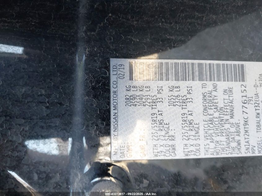 2019 NISSAN ROGUE 2019 року Бензин, 2.5, Передній привід, vin - 5N1AT2MT9KC776152 з США