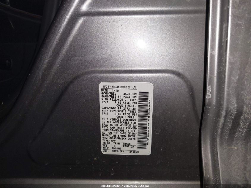 2010 NISSAN ROGUE 2010 року Бензин, 2.5, Повний привід, vin - JN8AS5MV2AW126526 з США