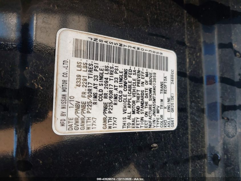2010 NISSAN ROGUE 2010 року Бензин, 2.5, Передній привід, vin - JN8AS5MT3AW013859 з США