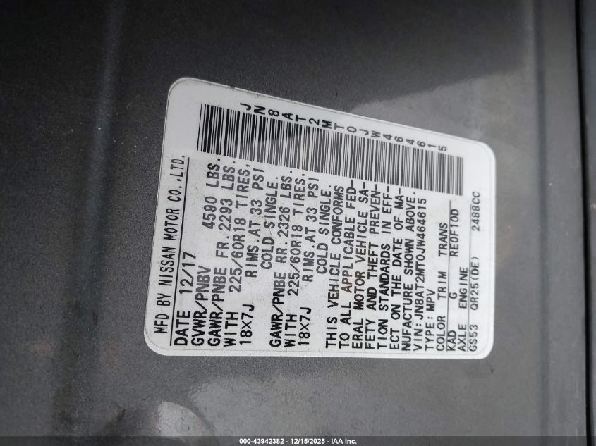 2018 NISSAN ROGUE 2018 року Бензин, 2.5, Передній привід, vin - JN8AT2MT0JW464615 з США