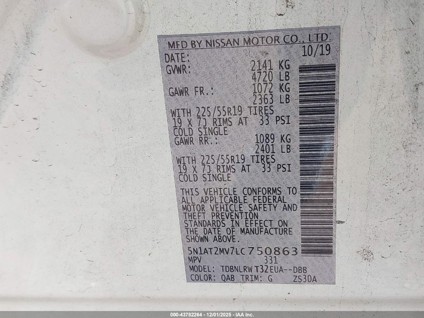 2020 NISSAN ROGUE 2020 року Бензин, 2.5, Повний привід, vin - 5N1AT2MV7LC750863 з США