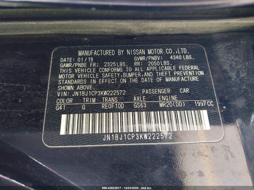 Колір ЧорнийЦиліндри 4Привід Передній привідVIN JN1BJ1CP3KW222572Стан Заводиться та їде (перевірено)Ушкодження Передня або задня AutoRIA