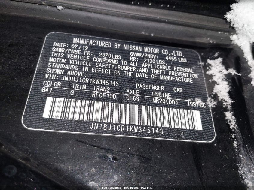 Колір ЧорнийЦиліндри 4Привід Повний привідVIN JN1BJ1CR1KW345143Стан Заводиться та їде (перевірено)Ушкодження Передня або задня AutoRIA