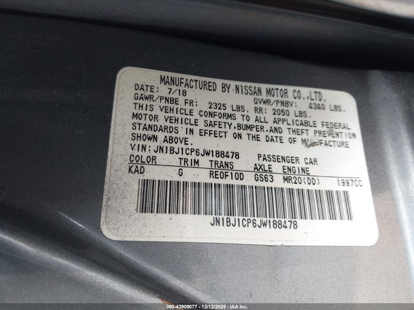 2018 NISSAN ROGUE SPORT 2018 року Бензин, 2.0, Передній привід, vin - JN1BJ1CP6JW188478 з США