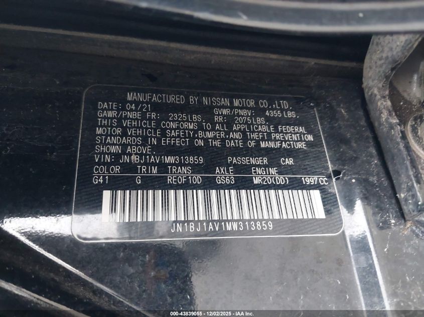 2021 NISSAN ROGUE SPORT 2021 року Бензин, 2.0, Передній привід, vin - JN1BJ1AV1MW313859 з США