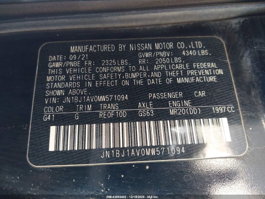 Колір ЧорнийЦиліндри 4Привід Передній привідVIN JN1BJ1AV0MW571094Стан Заводиться та їде (перевірено)Ушкодження Передня або задня AutoRIA