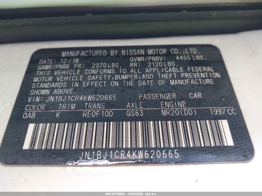 2019 NISSAN ROGUE SPORT 2019 року Бензин, 2.0, Повний привід, vin - JN1BJ1CR4KW620665 з США