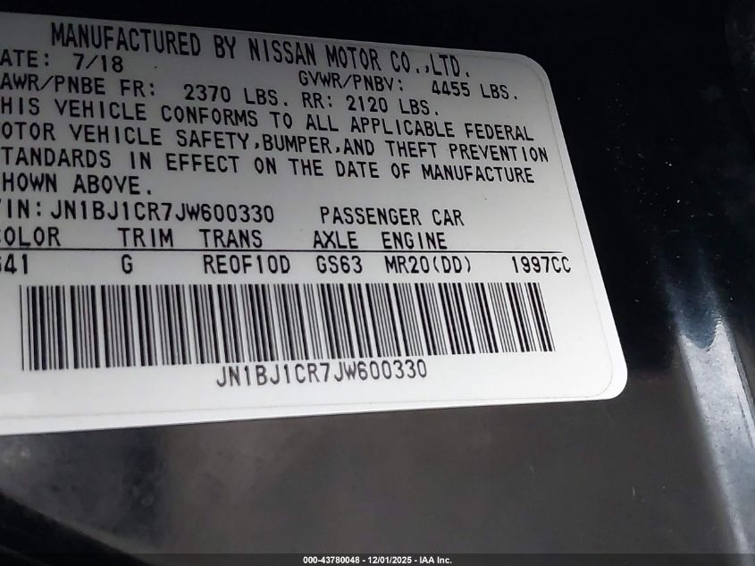 Колір ЧорнийЦиліндри 4Привід Повний привідVIN JN1BJ1CR7JW600330Стан СтаціонарноУшкодження Передня або задняДата аукціону 2025-12-09 AutoRIA