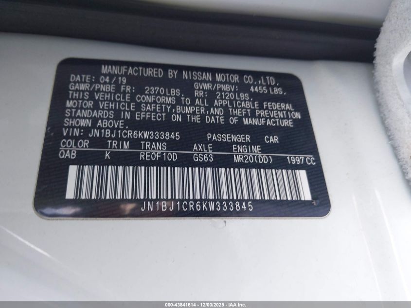 2019 NISSAN ROGUE SPORT 2019 року Бензин, 2.0, Повний привід, vin - JN1BJ1CR6KW333845 з США