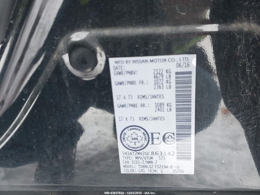 2016 NISSAN ROGUE 2016 року Бензин, 2.5, Повний привід, vin - 5N1AT2MV2GC863142 з США