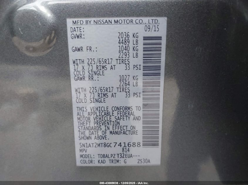 Колір СірийЦиліндри 4Привід Передній привідVIN 5N1AT2MT8GC741688Стан СтаціонарноУшкодження Передня або задня AutoRIA