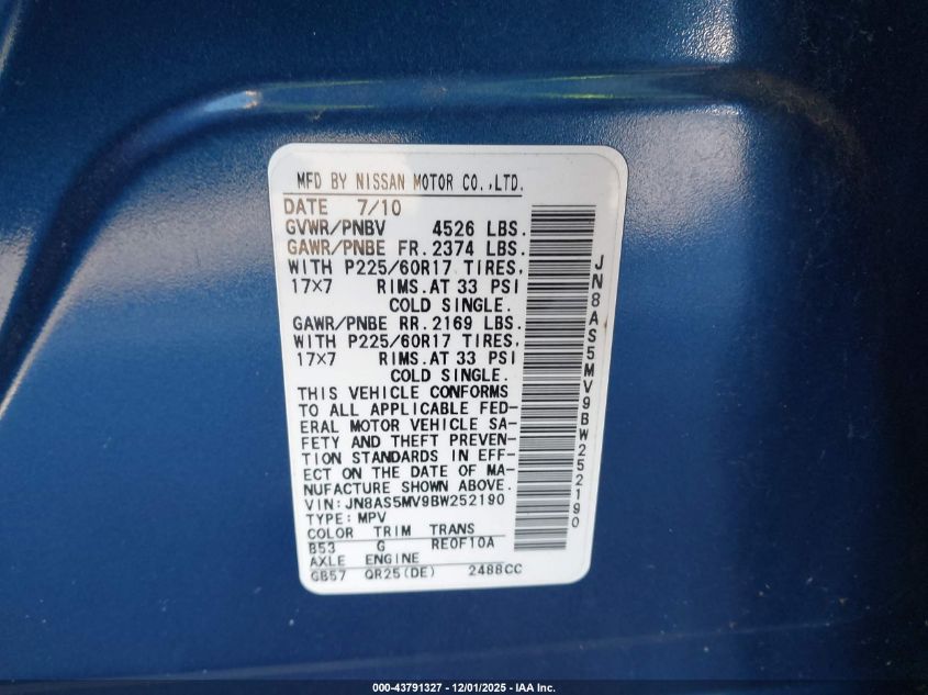 2011 NISSAN ROGUE 2011 року Бензин, 2.5, Повний привід, vin - JN8AS5MV9BW252190 з США