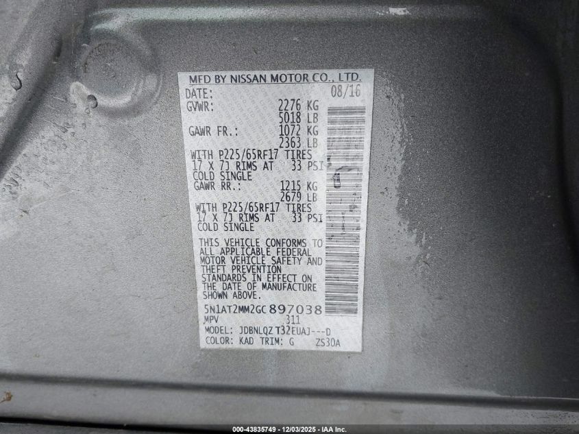 2016 NISSAN ROGUE 2016 року Бензин, 2.5, Повний привід, vin - 5N1AT2MM2GC897038 з США