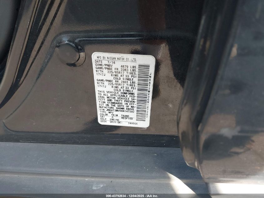 2016 NISSAN ROGUE 2016 року Бензин, 2.5, Повний привід, vin - JN8AT2MV0GW147282 з США