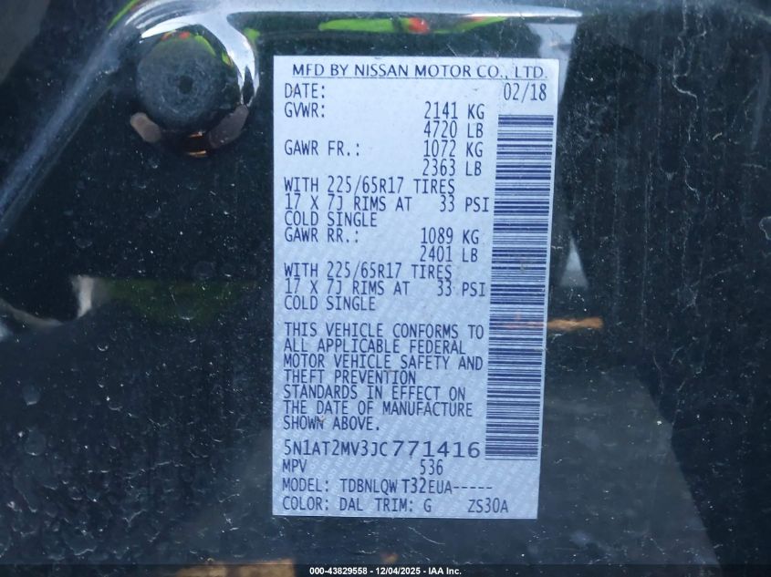 2018 NISSAN ROGUE 2018 року Бензин, 2.5, Повний привід, vin - 5N1AT2MV3JC771416 з США