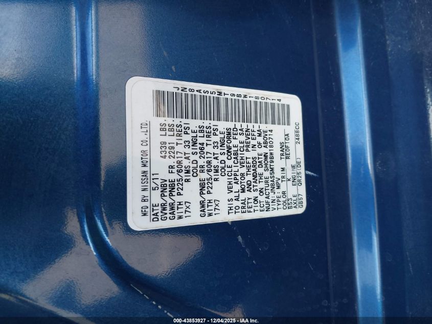 Колір СинійЦиліндри 4Привід Передній привідVIN JN8AS5MT9BW180714Стан СтаціонарноУшкодження По всьому авто AutoRIA