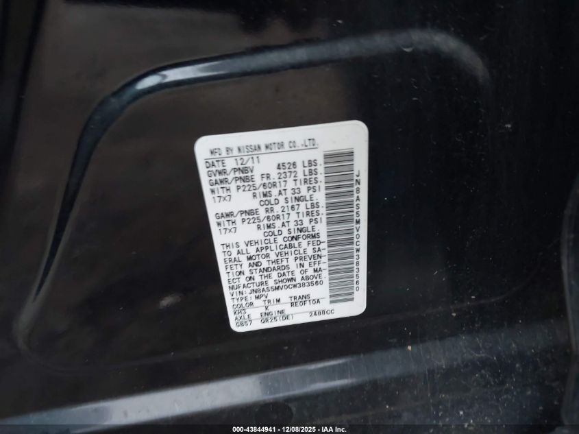 2012 NISSAN ROGUE 2012 року Бензин, 2.5, Повний привід, vin - JN8AS5MV0CW383560 з США