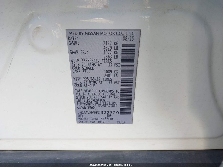 2015 NISSAN ROGUE 2015 року Бензин, 2.5, Повний привід, vin - 5N1AT2MV9FC922329 з США