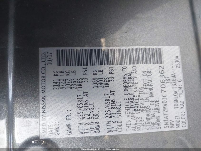 2018 NISSAN ROGUE 2018 року Бензин, 2.5, Повний привід, vin - 5N1AT2MV0JC706362 з США