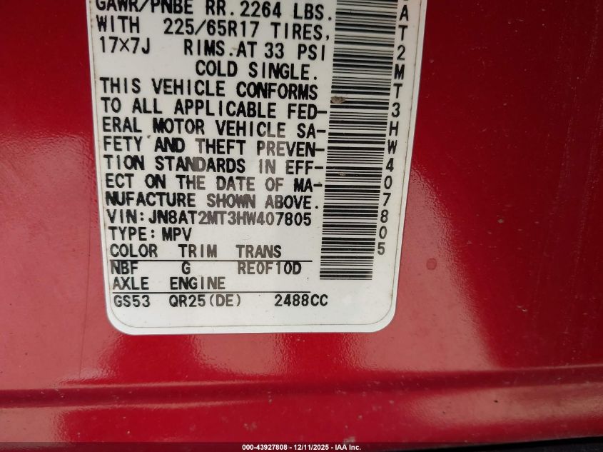 2017 NISSAN ROGUE 2017 року Бензин, 2.5, Передній привід, vin - JN8AT2MT3HW407805 з США