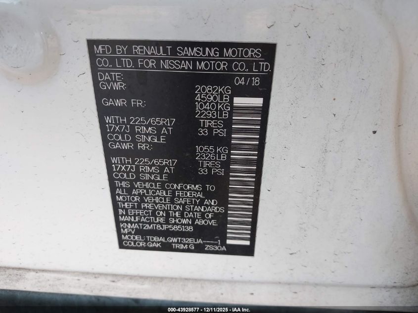 2018 NISSAN ROGUE 2018 року Бензин, 2.5, Передній привід, vin - KNMAT2MT8JP585138 з США