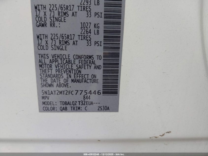 2015 NISSAN ROGUE 2015 року Бензин, 2.5, Передній привід, vin - 5N1AT2MT2FC775446 з США