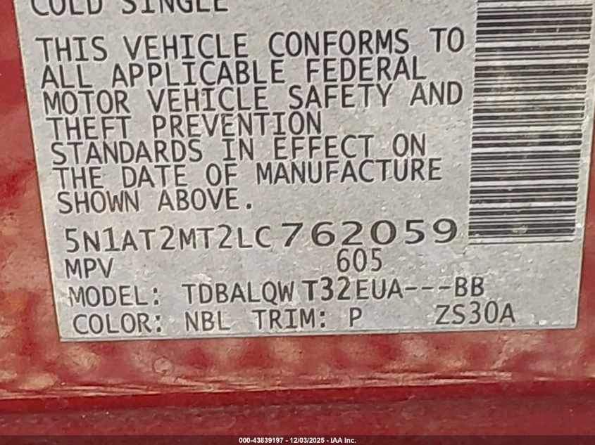 2020 NISSAN ROGUE 2020 року Бензин, 2.5, Передній привід, vin - 5N1AT2MT2LC762059 з США