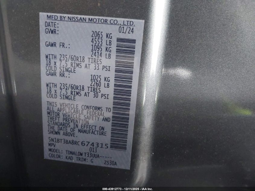 2024 NISSAN ROGUE 2024 року Бензин, 1.5, Передній привід, vin - 5N1BT3BA8RC674315 з США