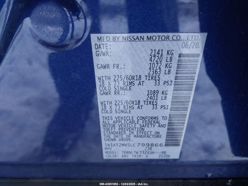 2020 NISSAN ROGUE 2020 року Бензин, 2.5, Повний привід, vin - 5N1AT2MV5LC799866 з США