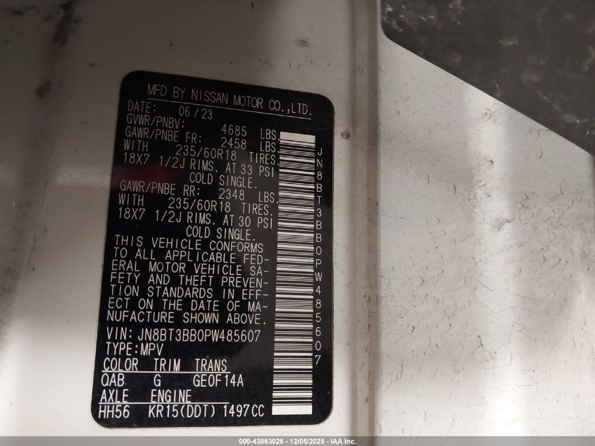 Колір БілийЦиліндри 3Привід Повний привідVIN JN8BT3BB0PW485607Стан Заводиться та їде (перевірено)Ушкодження Передня права AutoRIA