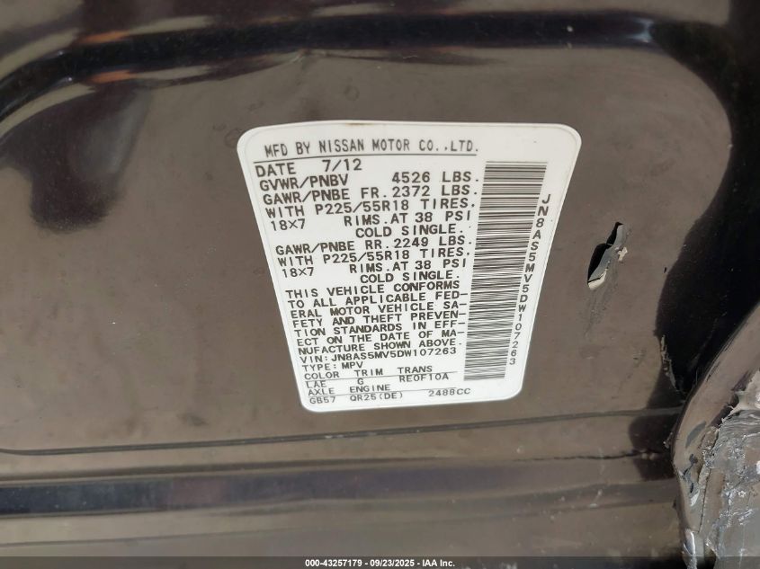 2013 NISSAN ROGUE 2013 року Бензин, 2.5, Повний привід, vin - JN8AS5MV5DW107263 з США