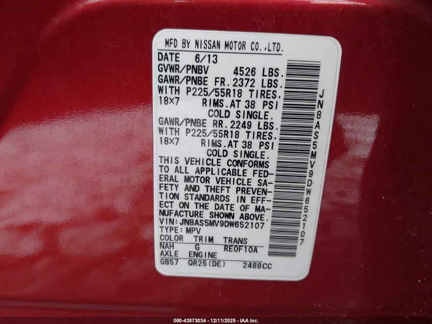 2013 NISSAN ROGUE 2013 року Бензин, 2.5, Повний привід, vin - JN8AS5MV9DW652107 з США
