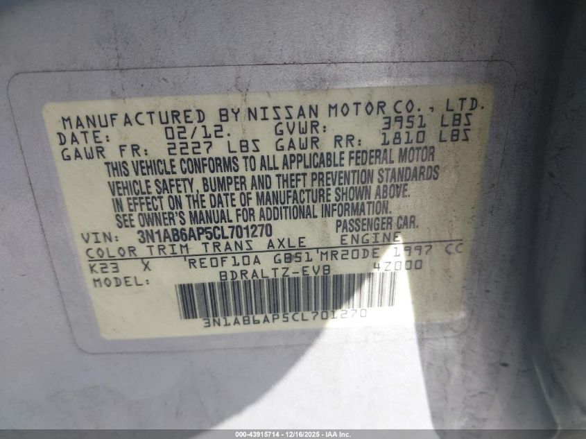 2012 NISSAN SENTRA 2.0