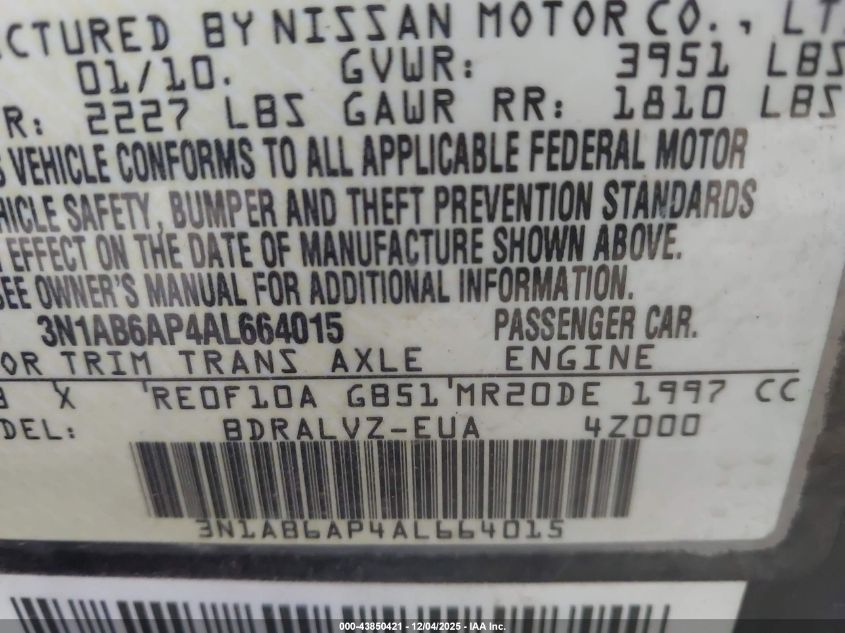 2010 NISSAN SENTRA 2010 року Бензин, 2.0, Передній привід, vin - 3N1AB6AP4AL664015 з США