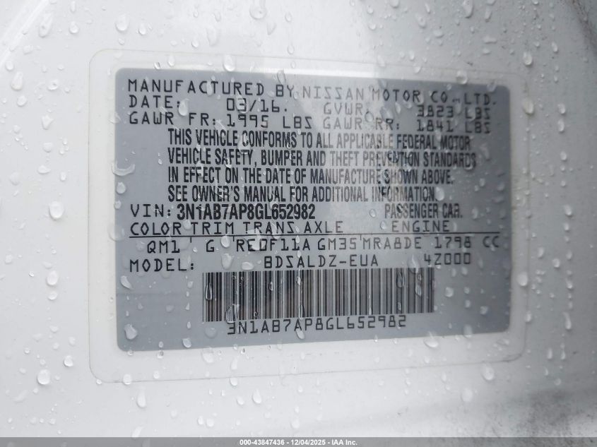 2016 NISSAN SENTRA 2016 року Бензин, 1.8, Передній привід, vin - 3N1AB7AP8GL652982 з США
