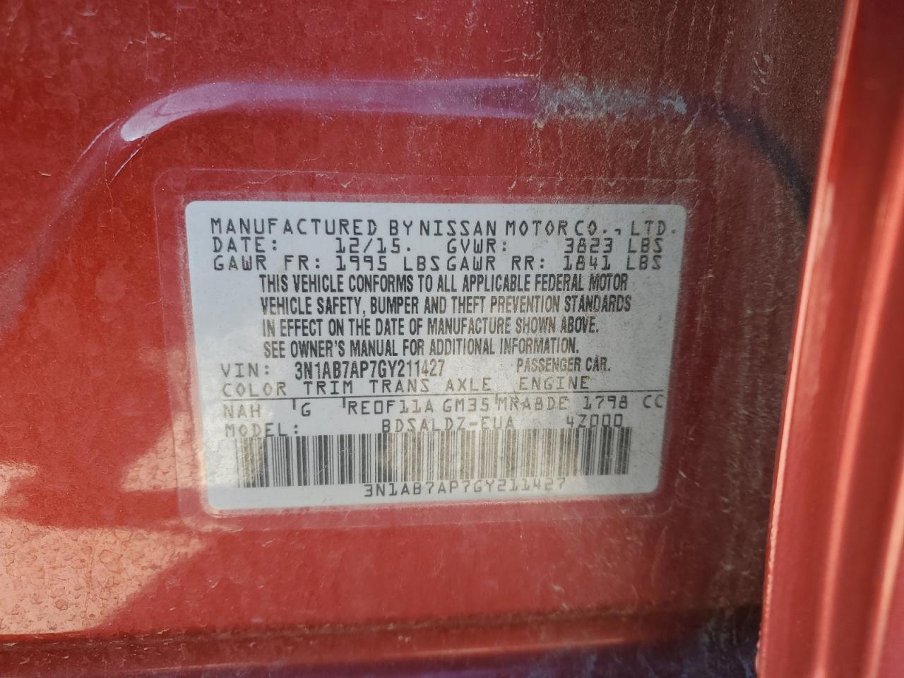 Колір БордовийЦиліндри 4VIN 3N1AB7AP7GY211427Стан ЗаводитьсяУшкодження Передня або задняДата аукціону 2025-12-08 AutoRIA