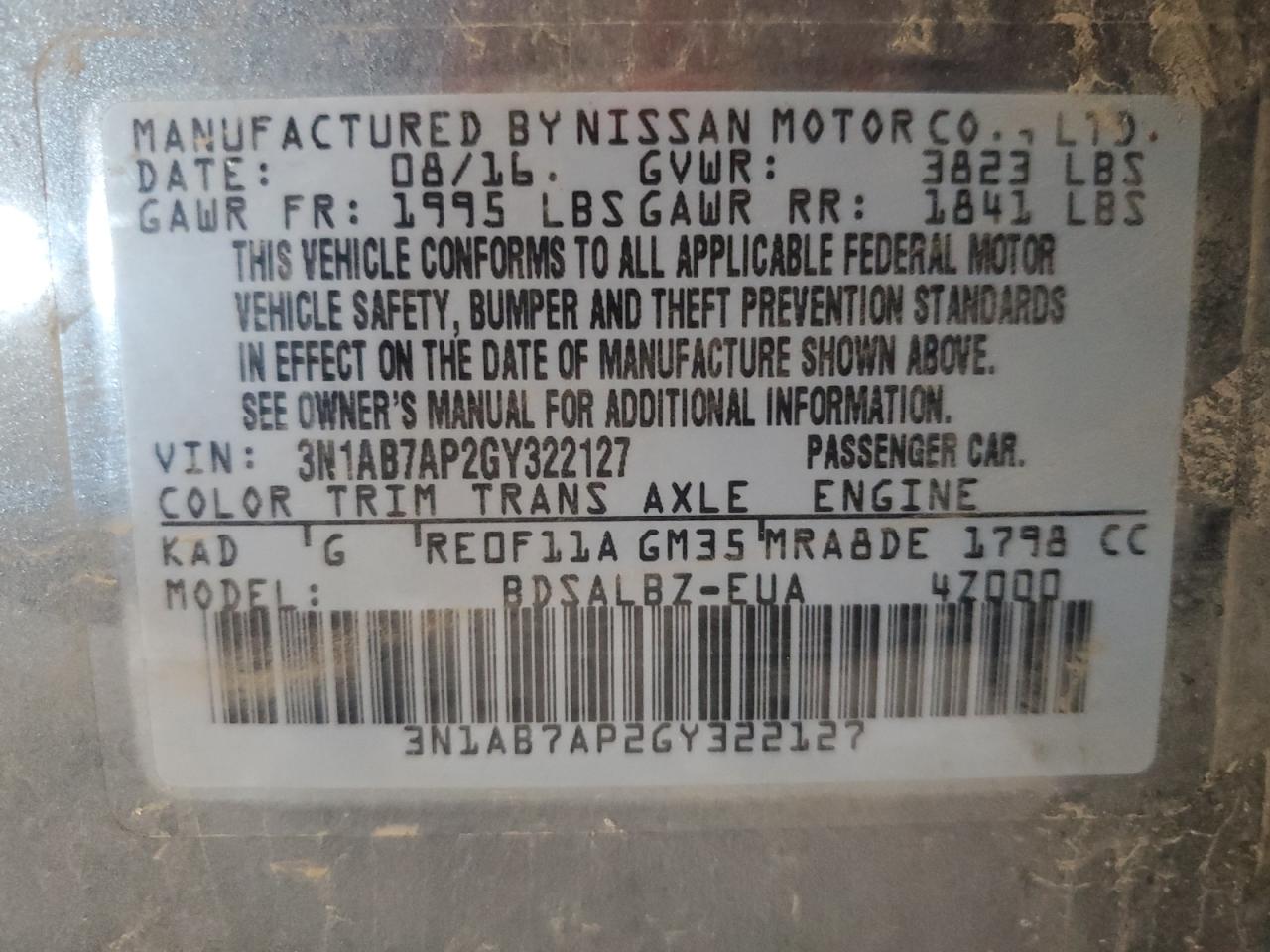 Колір СірийЦиліндри 4VIN 3N1AB7AP2GY322127Стан Заводиться та їде (перевірено)Ушкодження НезначніДата аукціону 2025-12-08 AutoRIA