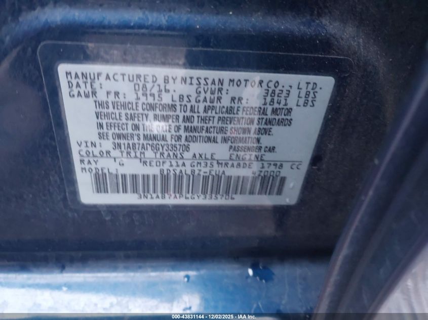 2016 NISSAN SENTRA S