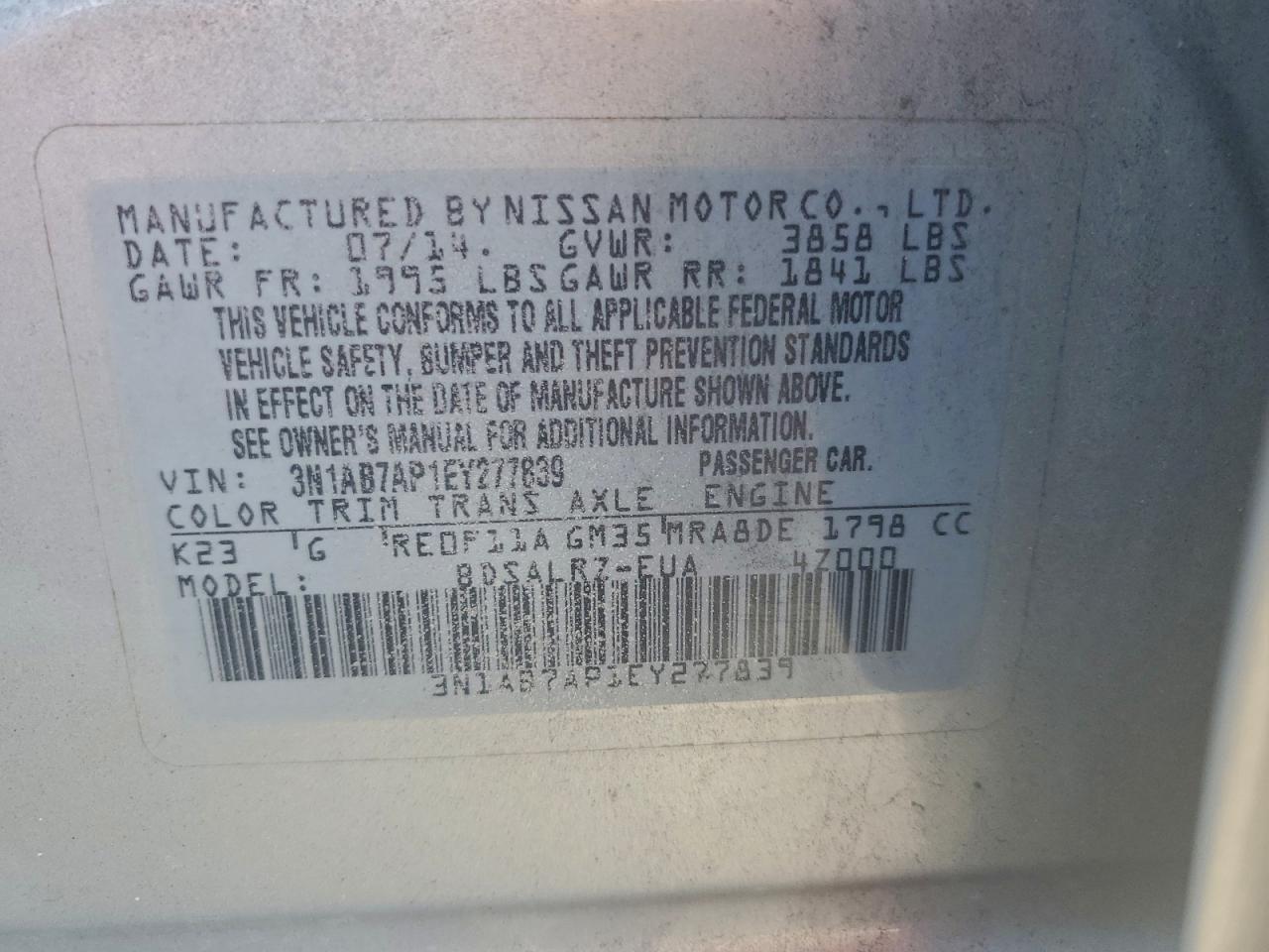 2014 NISSAN SENTRA S