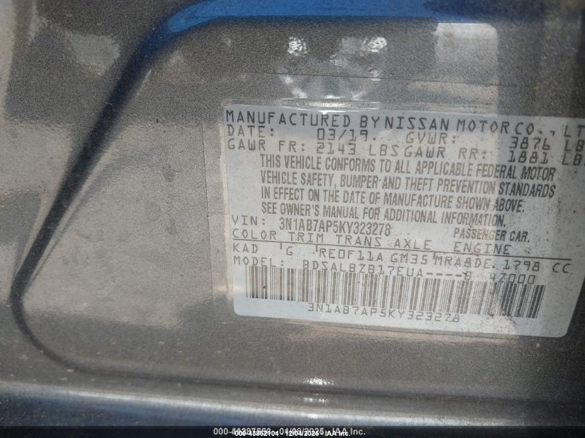 2019 NISSAN SENTRA 2019 року Бензин, 1.8, Передній привід, vin - 3N1AB7AP5KY323278 з США