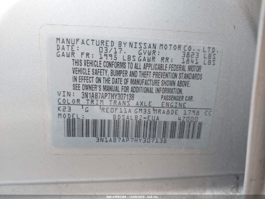 2017 NISSAN SENTRA S