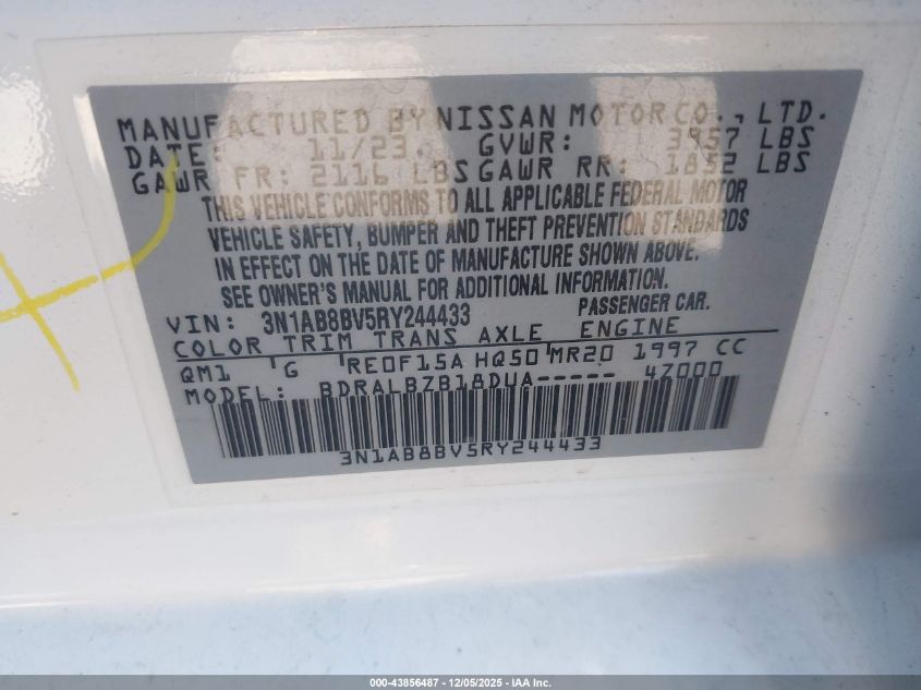 2024 NISSAN SENTRA 2024 року Бензин, 2.0, Передній привід, vin - 3N1AB8BV5RY244433 з США