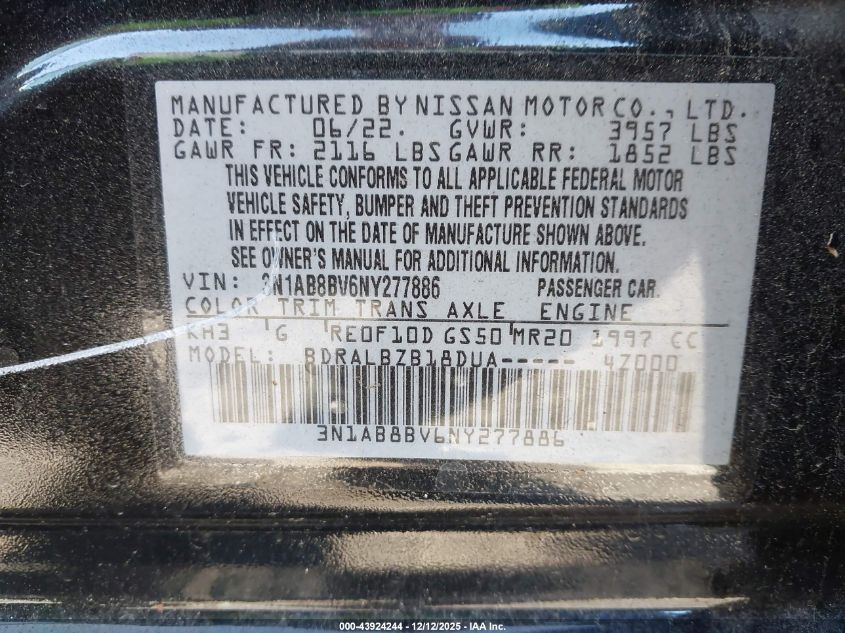 2022 NISSAN SENTRA 2022 року Бензин, 2.0, Передній привід, vin - 3N1AB8BV6NY277886 з США