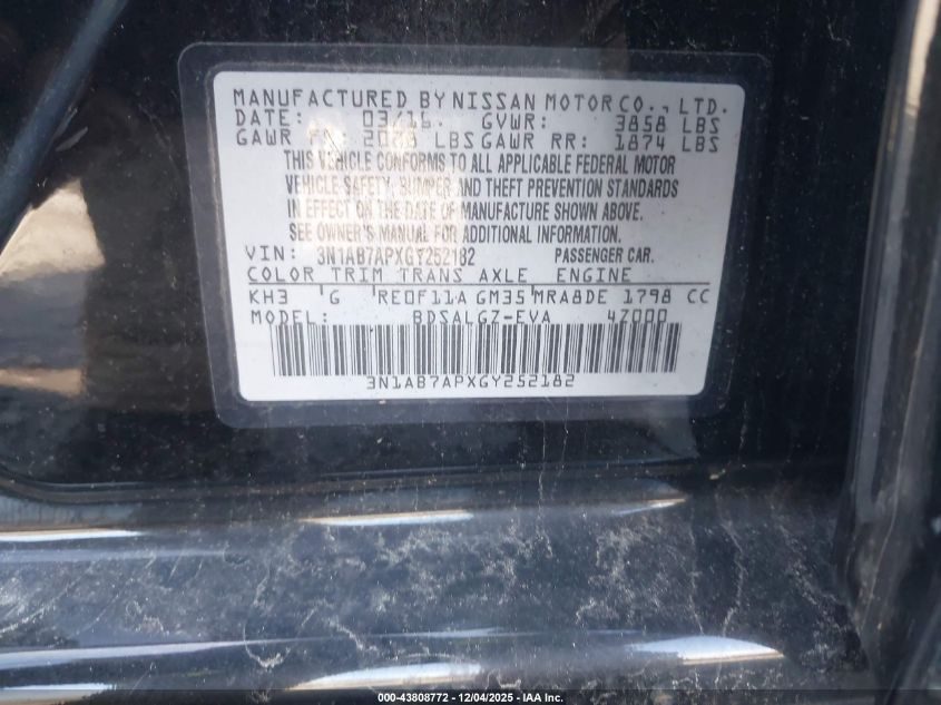 2016 NISSAN SENTRA 2016 року Бензин, 1.8, Передній привід, vin - 3N1AB7APXGY252182 з США