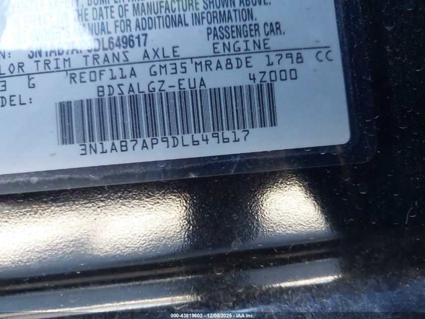 2013 NISSAN SENTRA 2013 року Бензин, 1.8, Передній привід, vin - 3N1AB7AP9DL649617 з США
