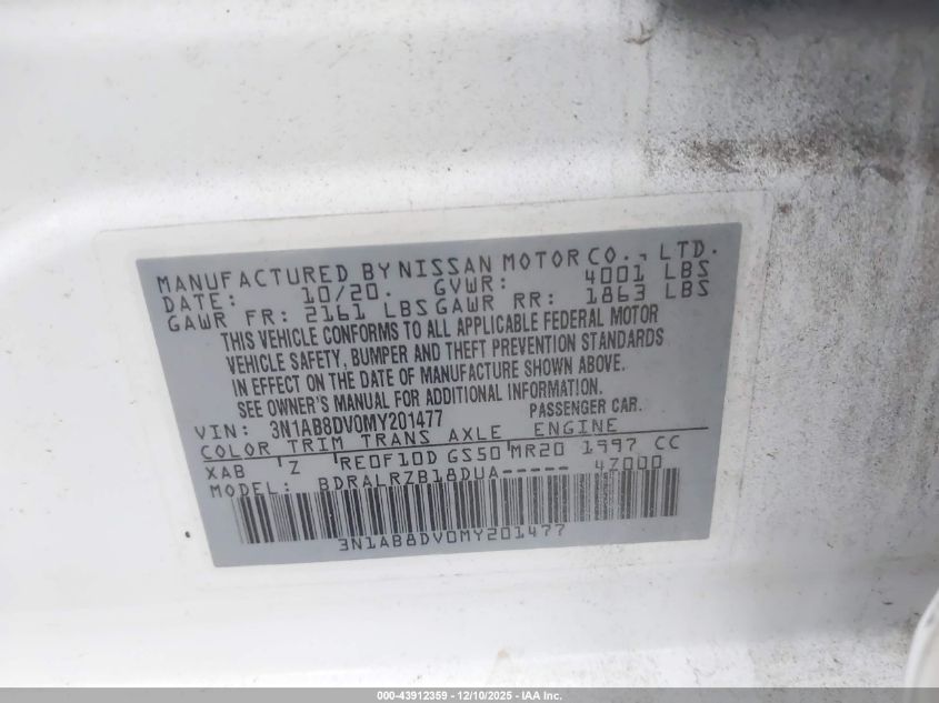 2021 NISSAN SENTRA 2021 року Бензин, 2.0, Передній привід, vin - 3N1AB8DV0MY201477 з США