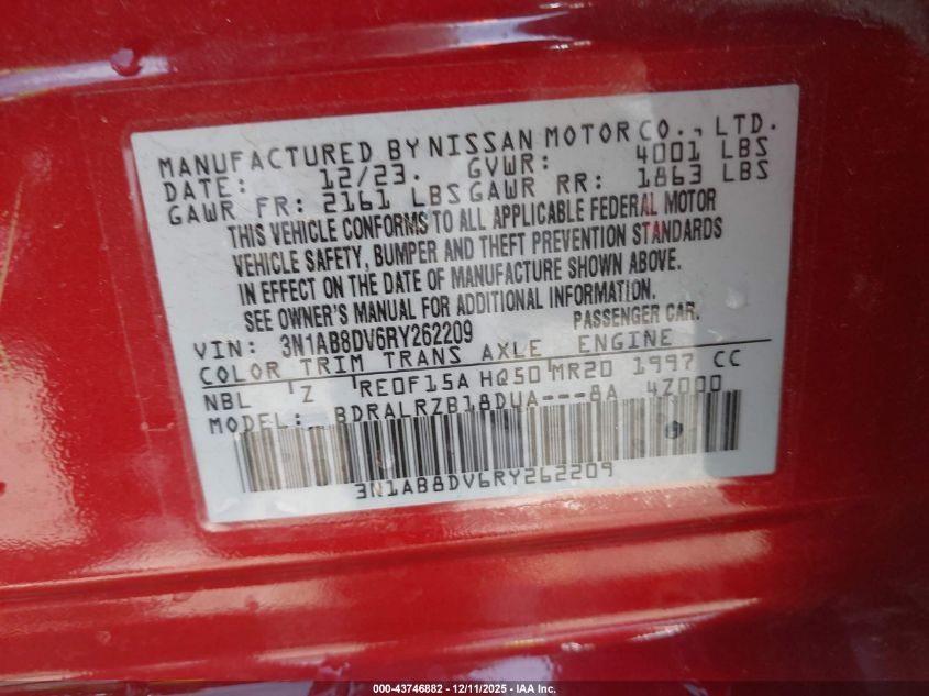 2024 NISSAN SENTRA 2024 року Бензин, 2.0, Передній привід, vin - 3N1AB8DV6RY262209 з США