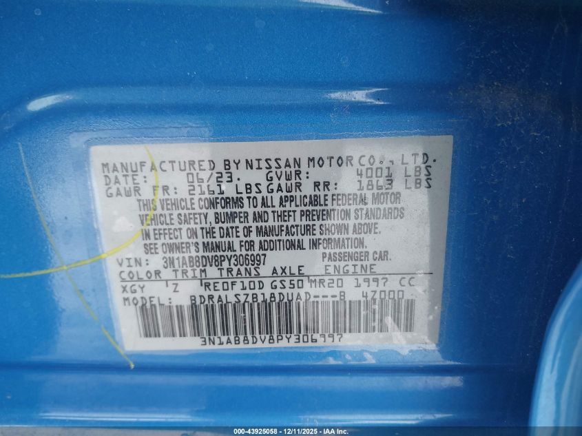 2023 NISSAN SENTRA 2023 року Бензин, 2.0, Передній привід, vin - 3N1AB8DV8PY306997 з США
